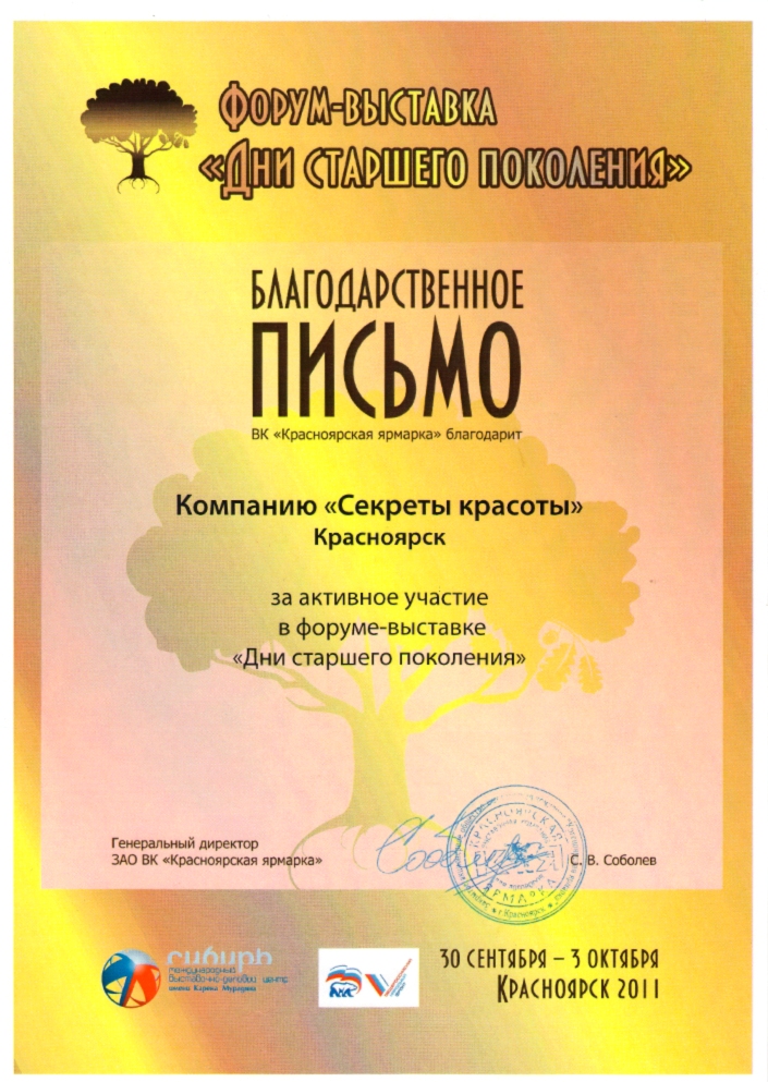 Компания ООО НПЛ «ЛН-Косметика» регулярно участвует во Всероссийских и Международных специализированных и межотраслевых выставках и конкурсах. Продукция Компании «Секрет красоты» отмечена медалями и дипломами. Многочисленные знаки признания подтверждают высокое качество и уникальность сухой косметики «Секрет красоты», а также эффективность работы Компании в продвижении продукции на рынок.